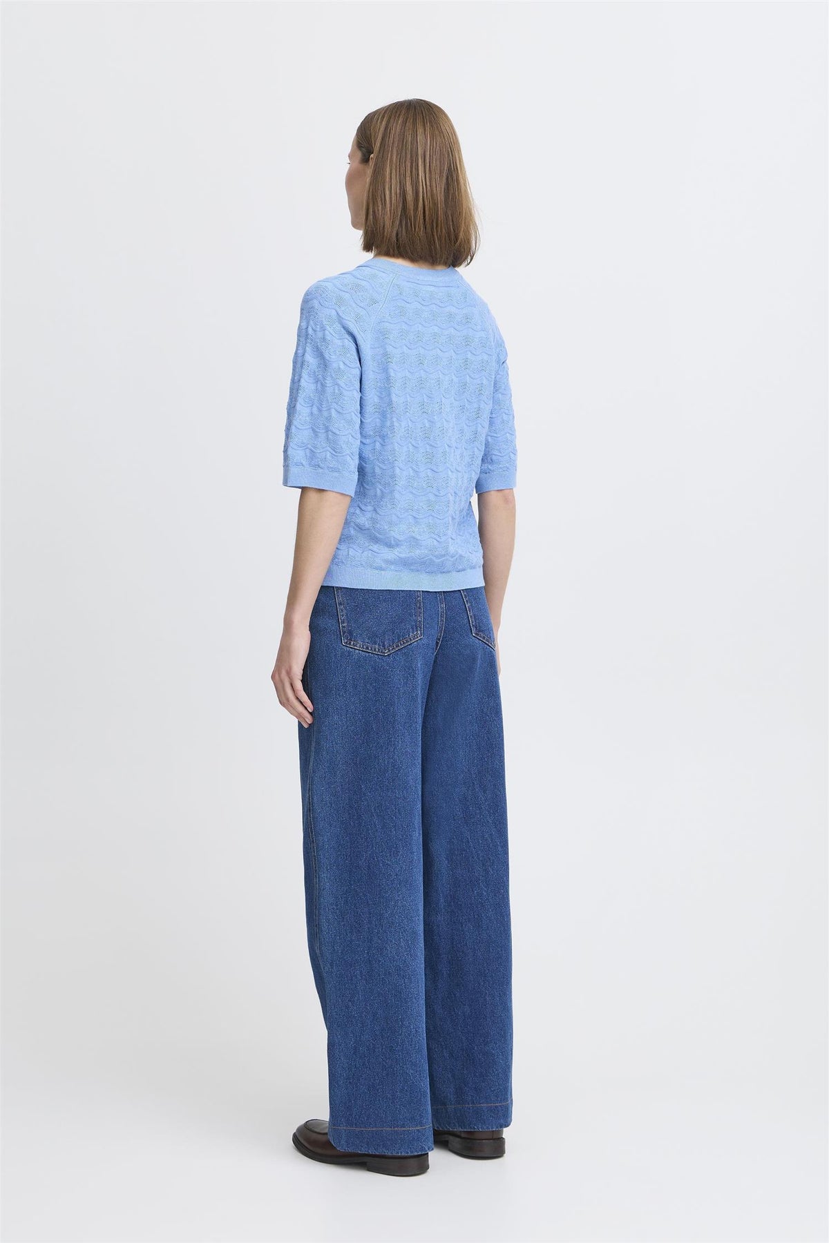 Lekker strikket topp med korte ermer og rett passform i myk viscose.
