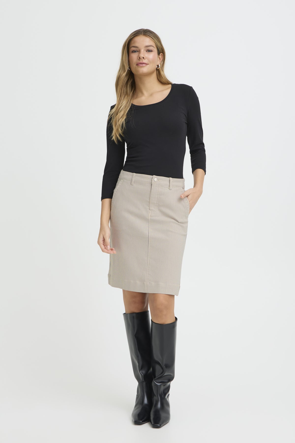 Stripete skjørt med rett passform, knelengde i en herlig stretchy og glatt kvalitet.