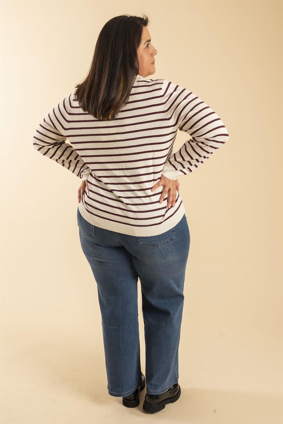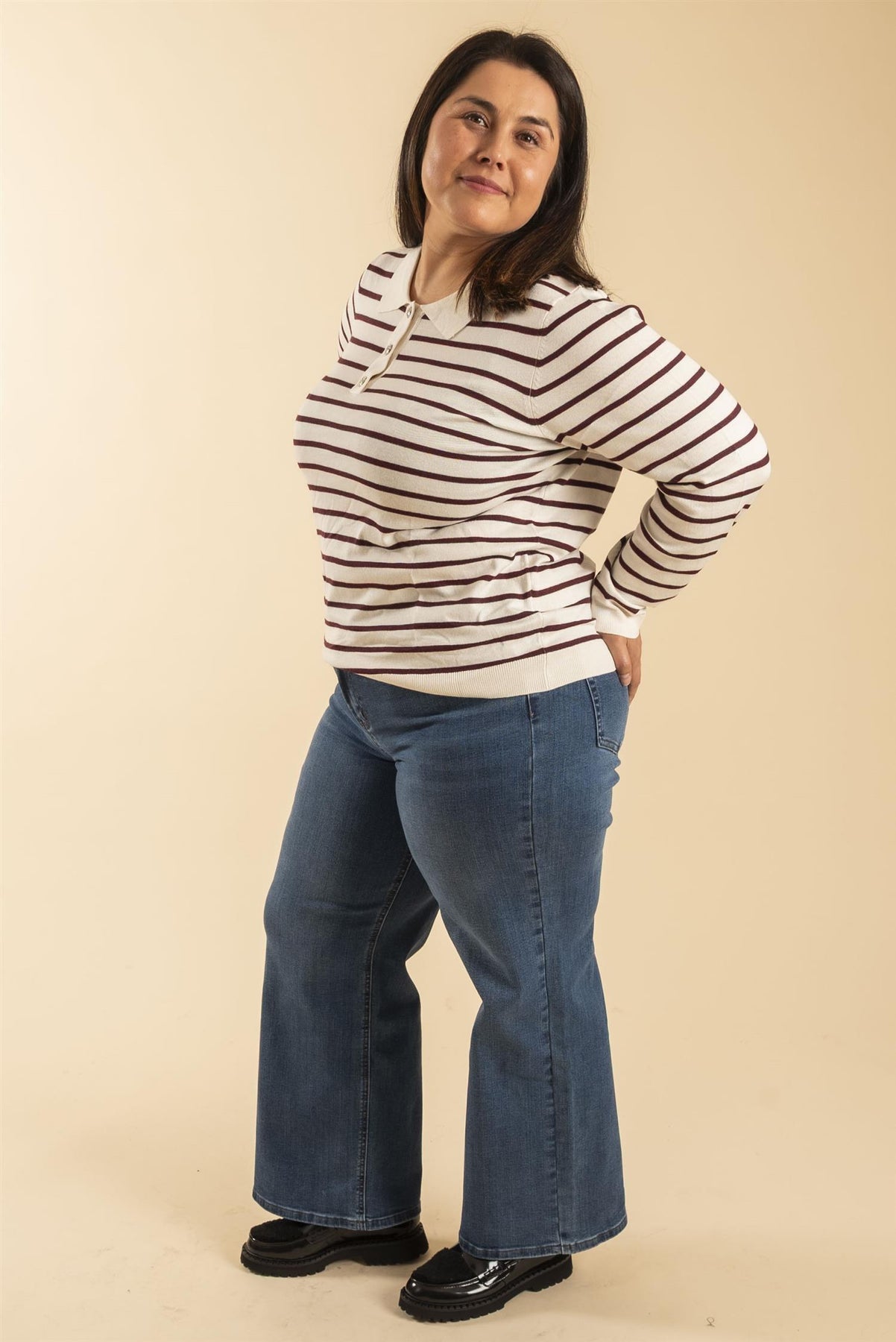 Offwhite bunn med vinrøde striper gir den klassiske looken.
