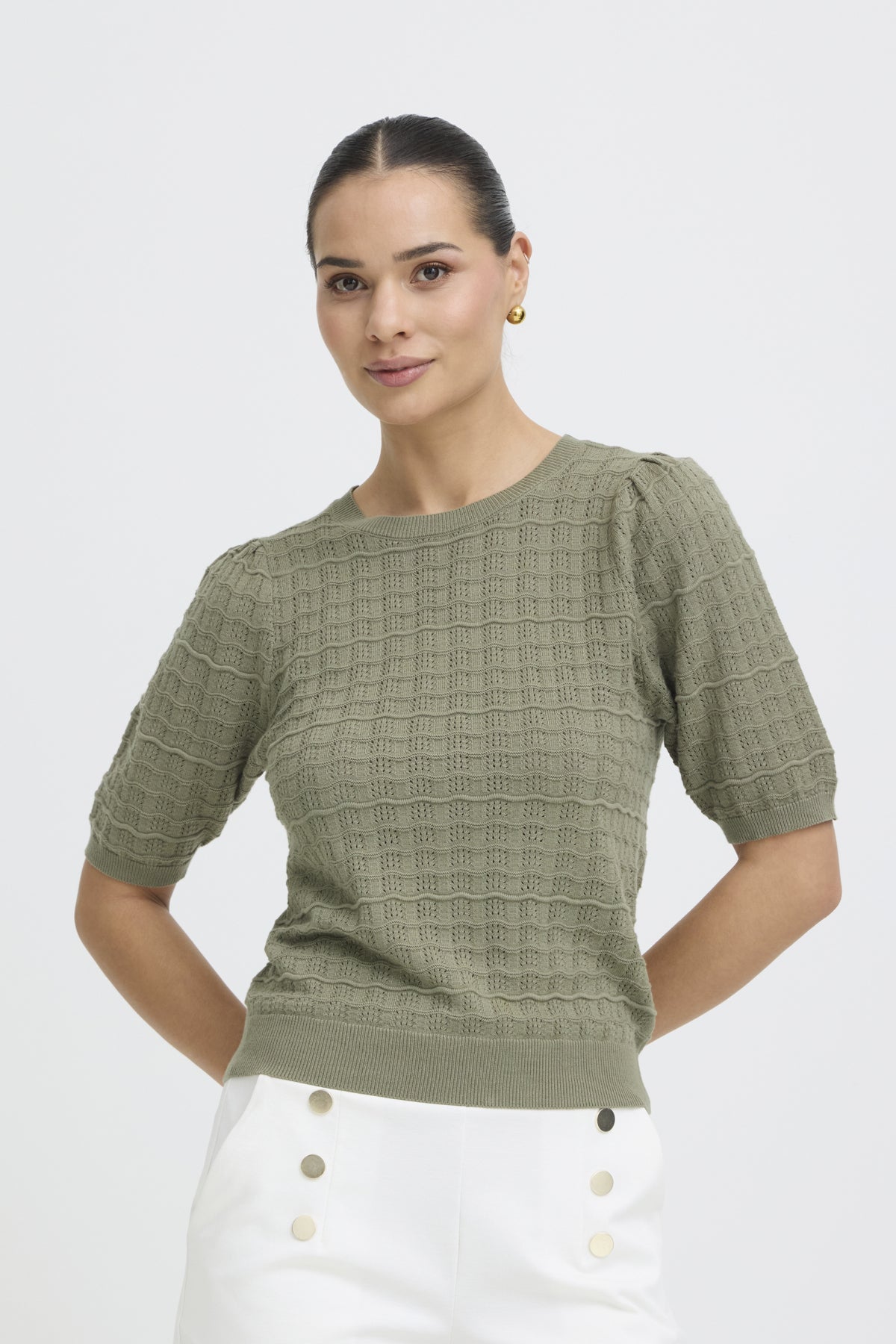 Lekker strikkegenser til fantastisk pris, med en rett fasong med gjennomgående hullstruktur og rund hals. Halvlange ermer med svakt volum og ribbestrikkede avslutninger gjør at denne er like fin til skjørt som til høytlivete bukser.