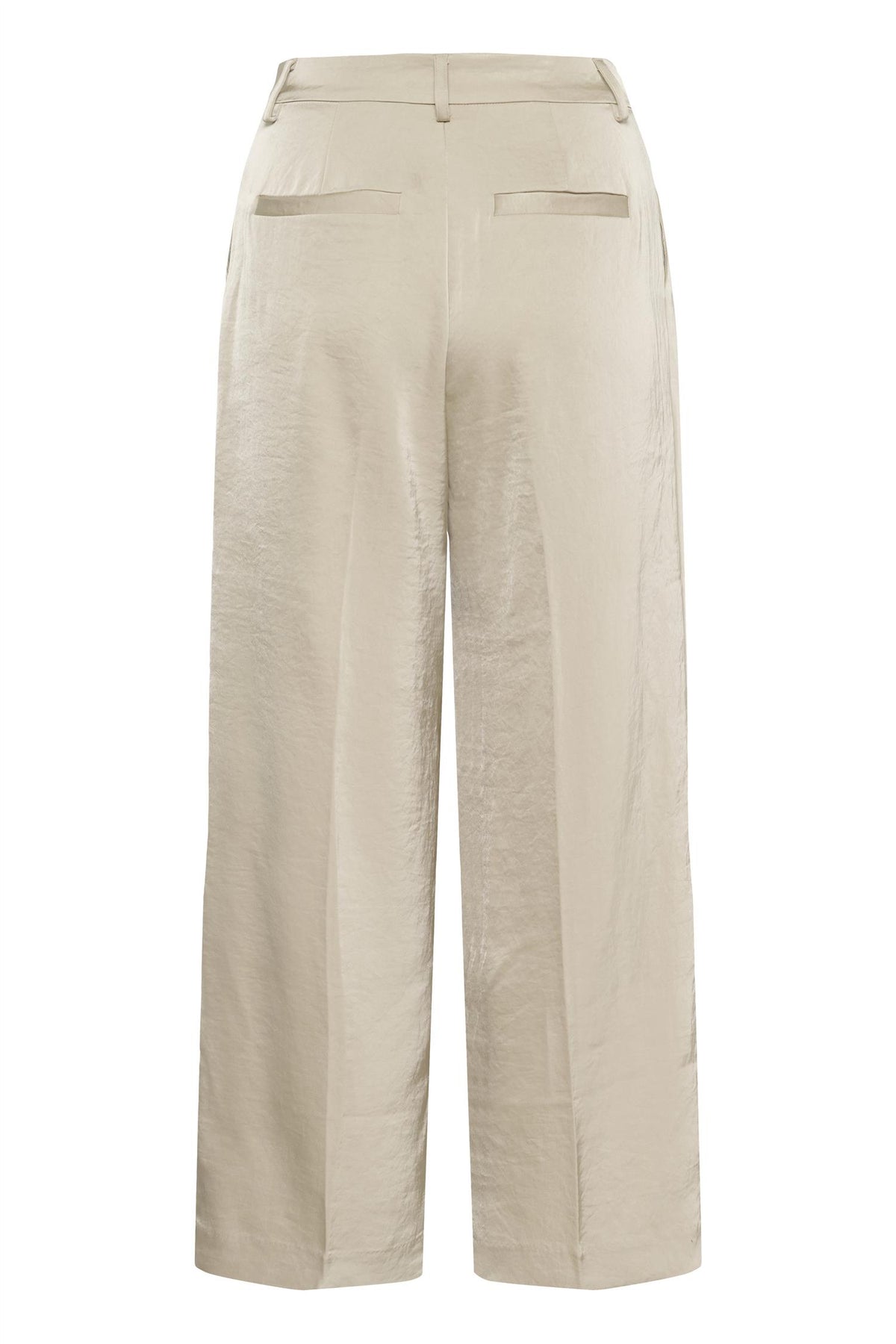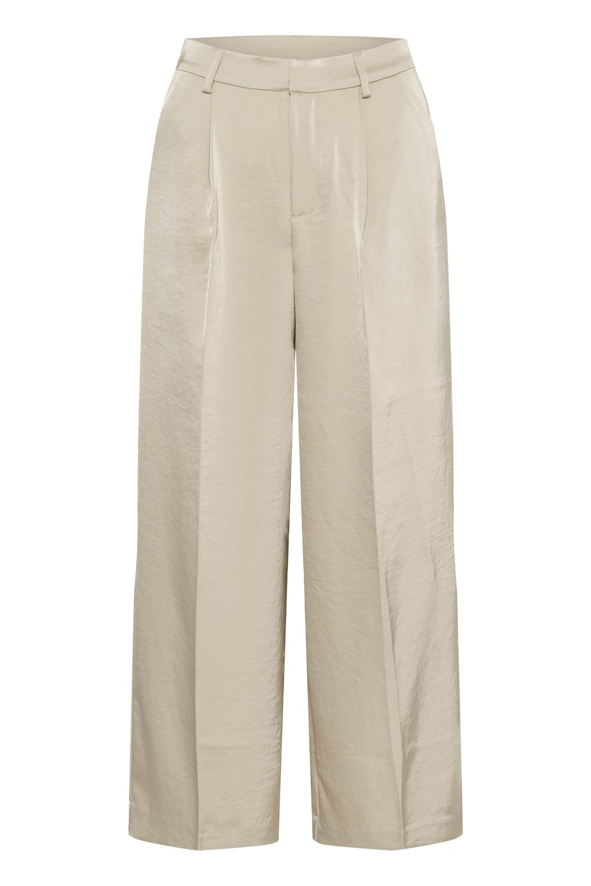 Kule dress-bukser med vidde og rett silhuett, pressede folder foran og beltehemper i shiny look.