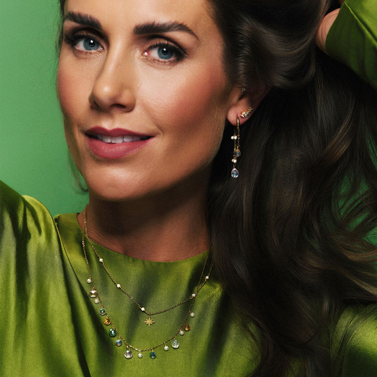 Vi elsker dette kjedet! Delikate glassdråper i en nydelig fargekombinasjon, nedtonet og samtidig glamorøs. Like fin til hverdagsantrekket som festkjolen, alene, eller lag på lag med andre kjeder i kolleksjonen. Tone Damli by A&C Oslo, en smykkekolleksjon som oser av femininitet, lekenhet og eleganse. Høy kvalitet, laget i begrenset antall.