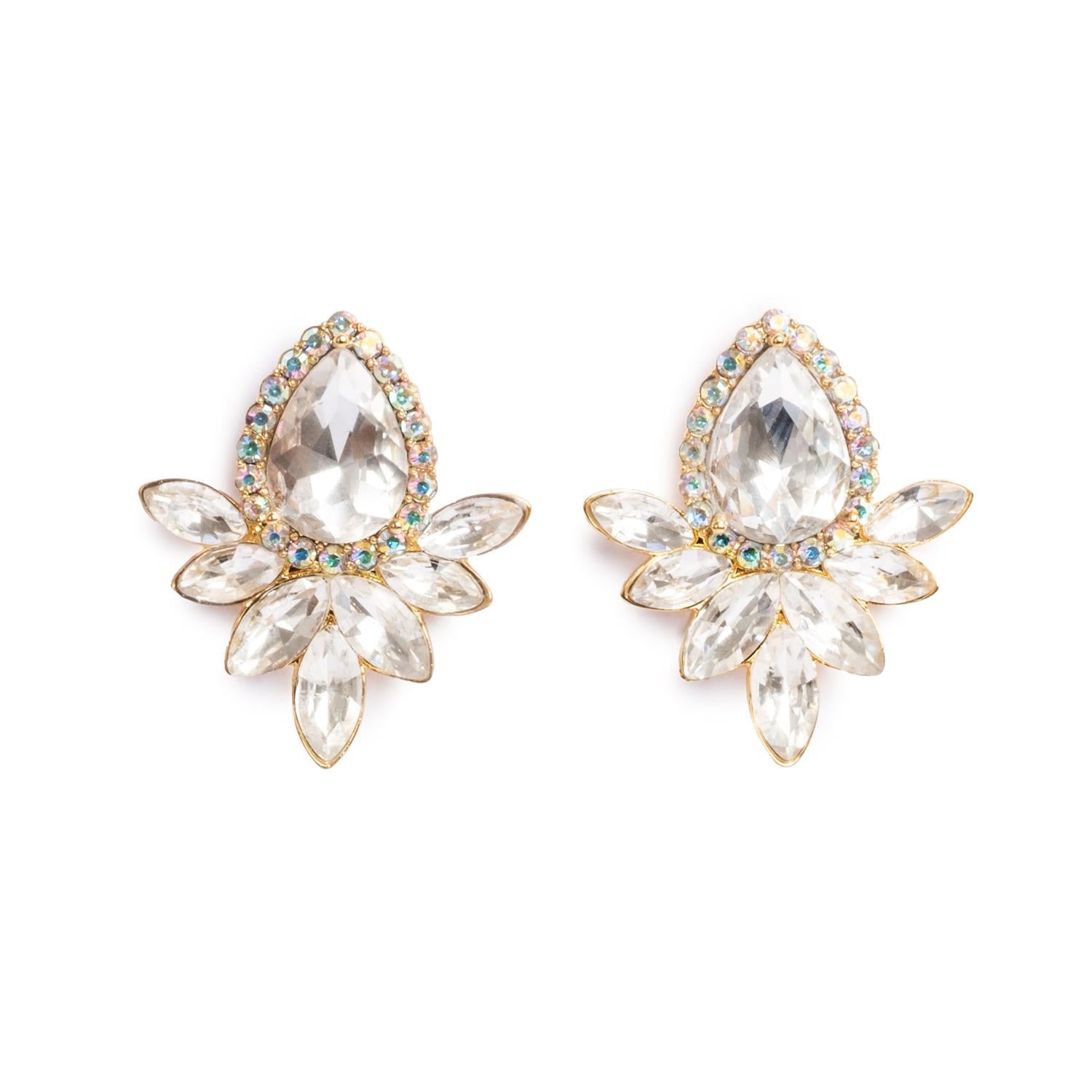 Here I am! Glassteiner i krystall, omkranset av glitrende steiner med Aurora Borealis effekt som skinner i nydelige pastelltoner. Klar for fest! Tone Damli by A&C Oslo, en smykkekolleksjon som oser av femininitet, lekenhet og eleganse. Høy kvalitet, laget i begrenset antall.