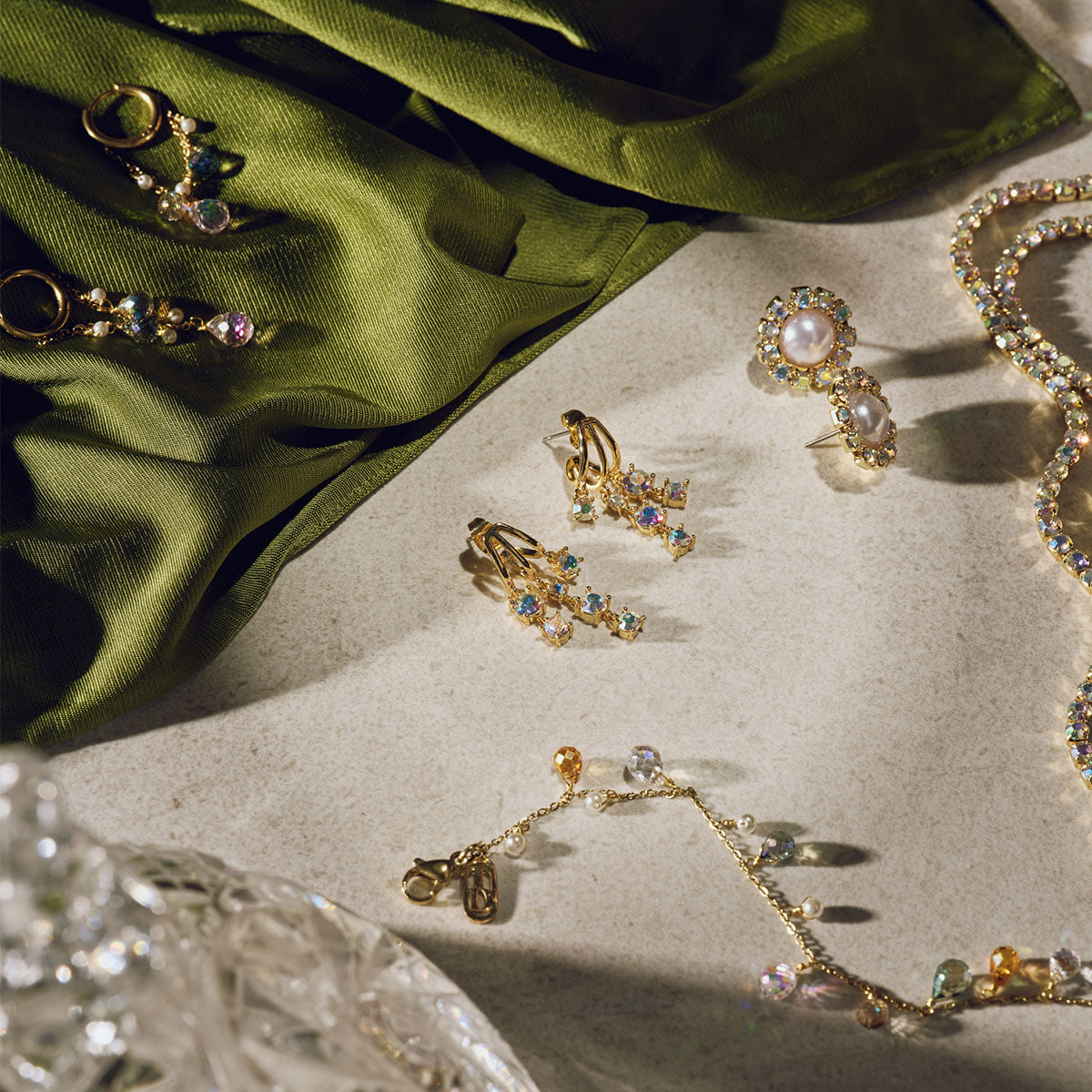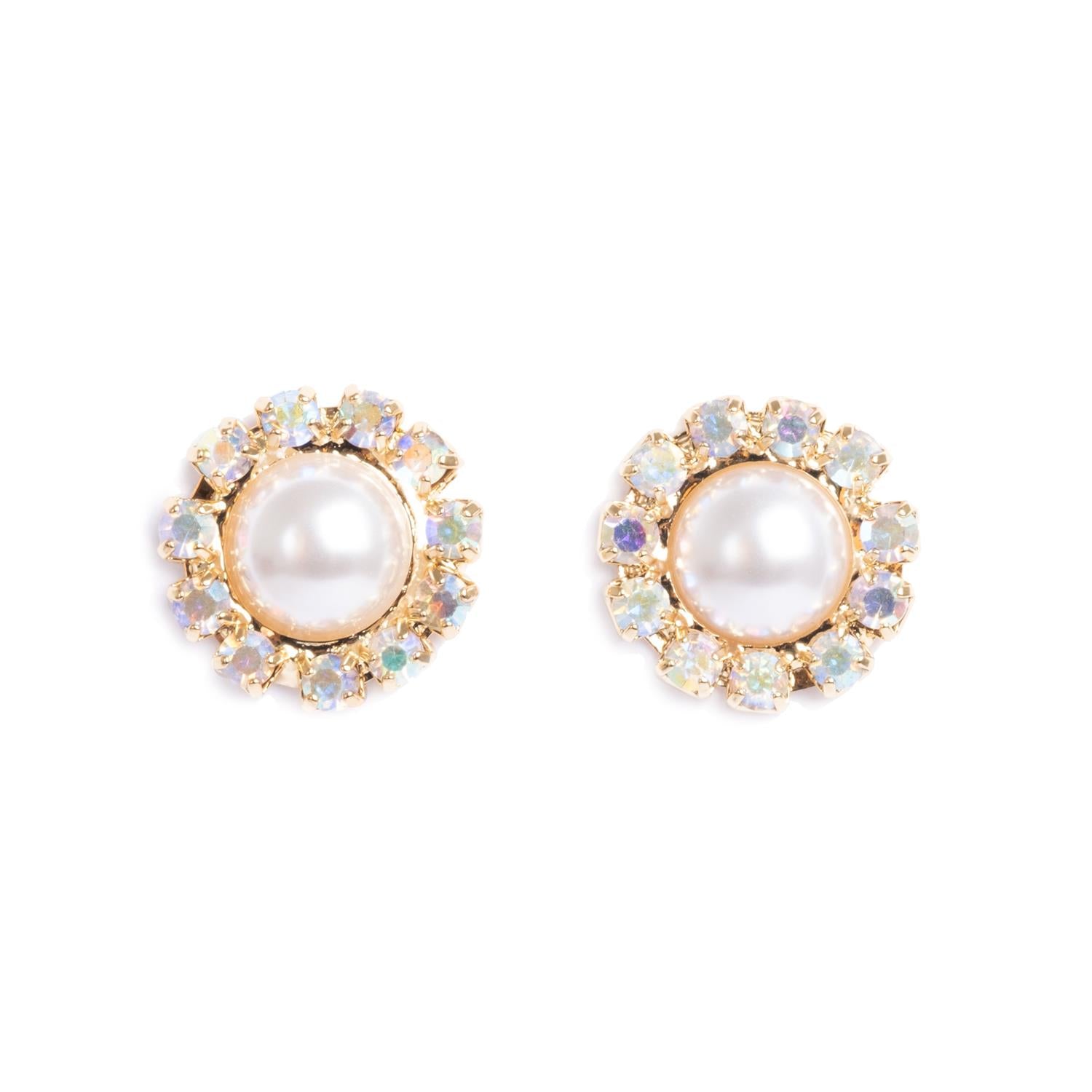 Disse klassiske perleøredobbene er rocket opp med krystallsteiner i Aurora Borealis effekt. Tidløs og perfekt til enhver anledning. Tone Damli by A&C Oslo, en smykkekolleksjon som oser av femininitet, lekenhet og eleganse. Høy kvalitet, laget i begrenset antall.