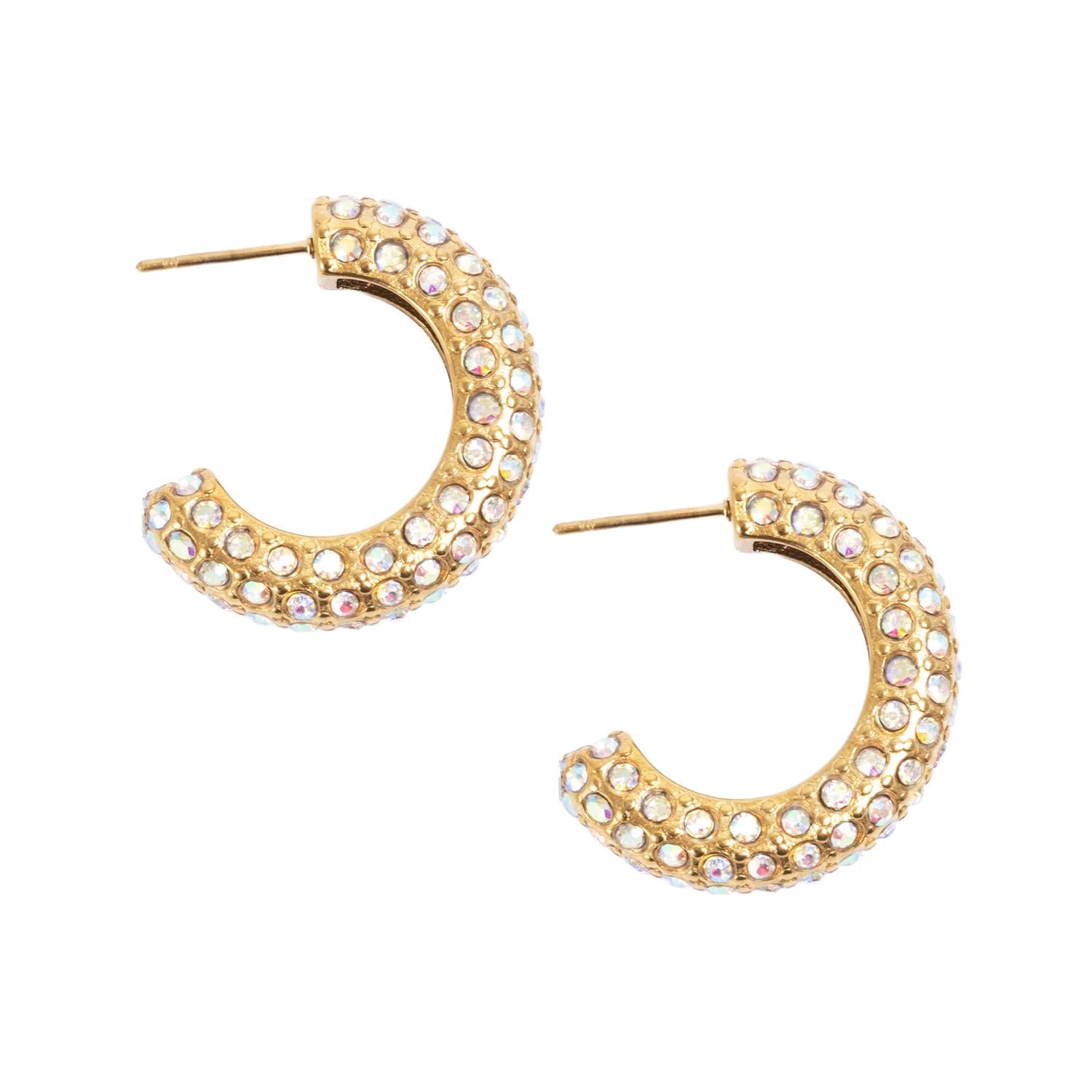 Hoop hoop! Vi bare elsker disse! Aurora-hoops er glamorøse, kraftige statement øreringer med krystallsteiner i Aurora Borealis effekt. De glitrer i ulike pastellfarger som en solnedgang! Øredobbene er lette og behagelige å ha på. Tone Damli by A&C Oslo, en smykkekolleksjon som oser av femininitet, lekenhet og eleganse. Høy kvalitet, laget i begrenset antall.