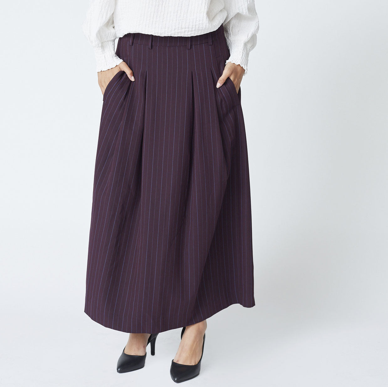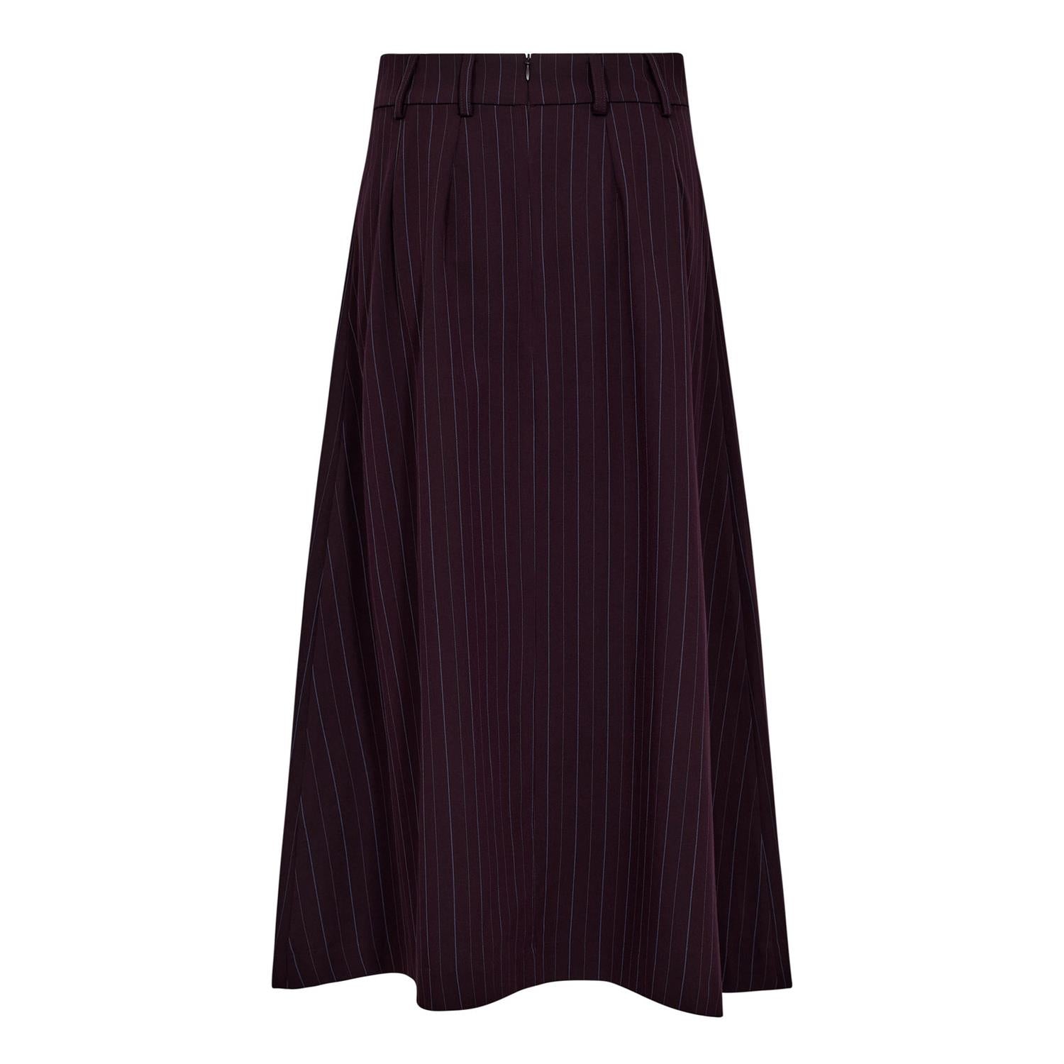 Skikkelig kult og feminint skjørt som vil gi garderoben ditt det lille ekstra! Skjørtet kommer i nydelig plomme farge m/striper i blått, har midi-lengde og beltehemper i linningen. Lukkes med skjult glidelås bak. Skjørtet har lommer i sidene og leggdetaljer foran. Tungt stoff som faller så pent.
