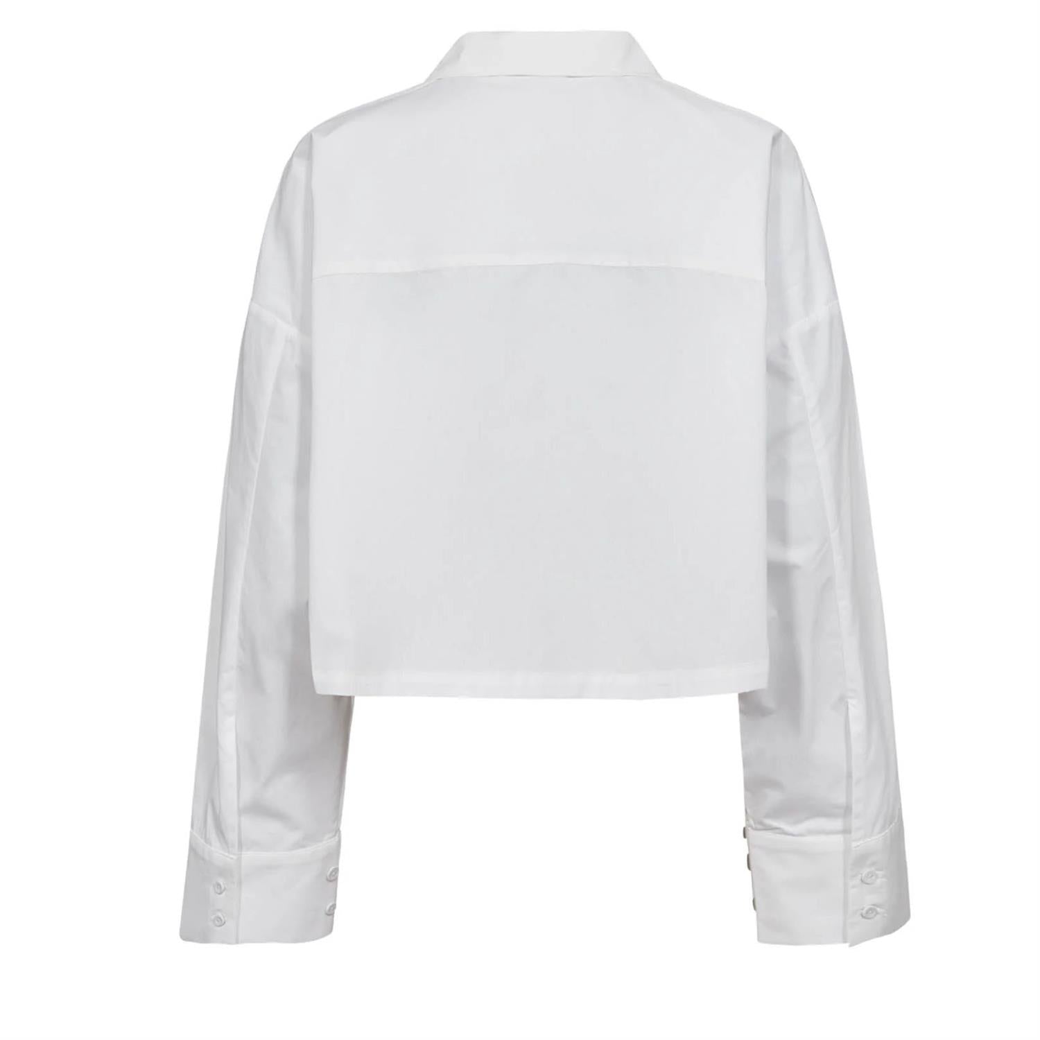 Stilig skjorte med kort og boxy passform. Lange ermer med bred mansjett og dekorativ lomme på venstre side med delikate blonder.