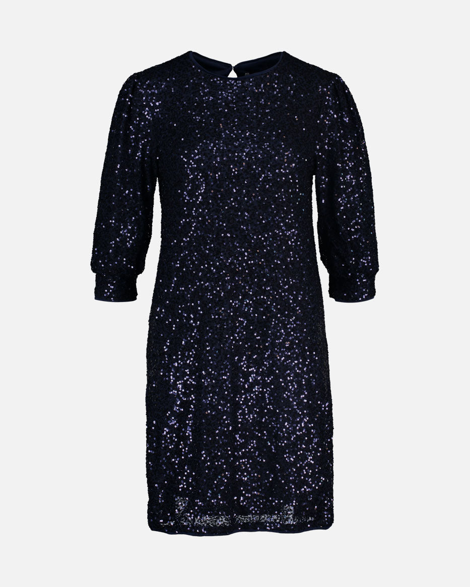 Denne glitrende paljettkjolen er alt du trenger for å løfte festlooken til nye høyder. Med sin rette passform og halvlange ballongermer med smale mansjetter, kombinerer den komfort og eleganse på en uanstrengt måte.