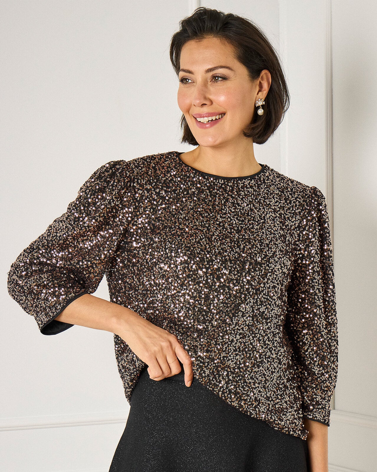 Style toppen med en lekker sort dressbukse og pumps for å få en fest klar look. Bringe paljetter inn i hverdagen? Style med din favoritt jeans, blazer og boots for en lekkert hverdagsantrekk.