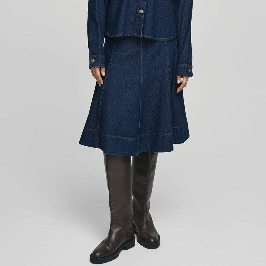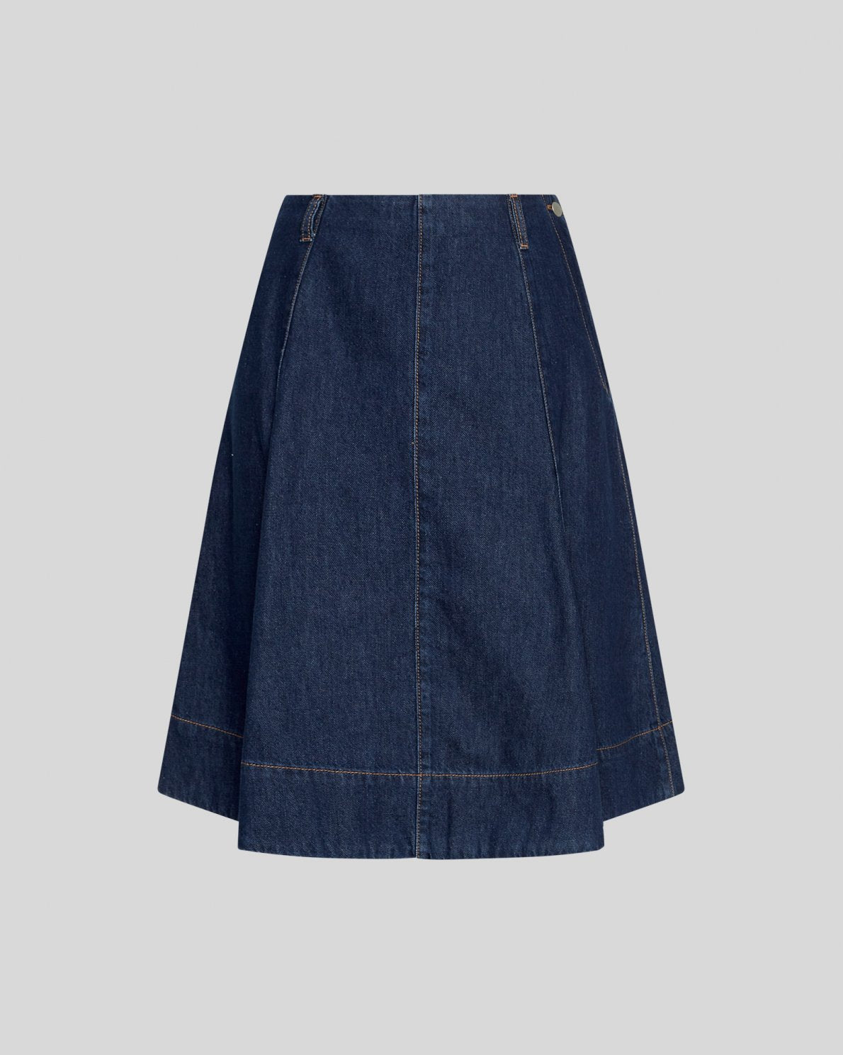 Et tidløst denimskjørt med flatterende A-fasong og klassiske sømmer. Adna Alena Skirt har høy midje, strukturert passform og en mørk blå vask som gir et rent og moderne uttrykk. Perfekt med en enkel t-skjorte til hverdags, eller kombinert med matchende denimskjorte for en kul ton-i-ton-look.