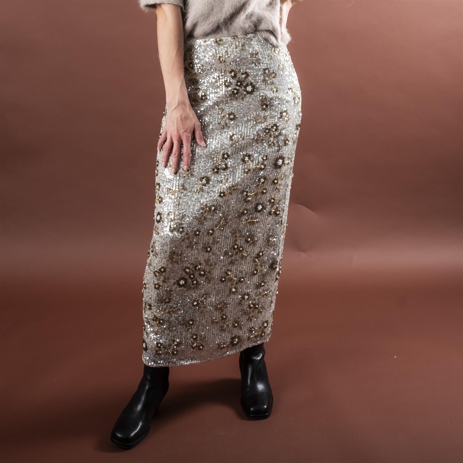 Magnolia HighWaist Skirt Embrodery - Silver/T Coco