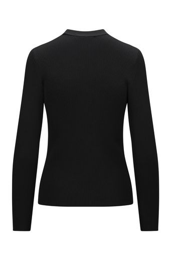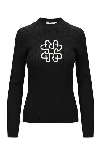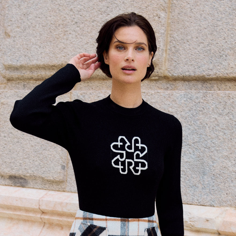 Superbehagelig ribbestrikket genser fra Katrin Uri i sort med hvitt monogram på brystet. Enkel, smal og fin genser som passer fint å style både til skjørt og bukser.