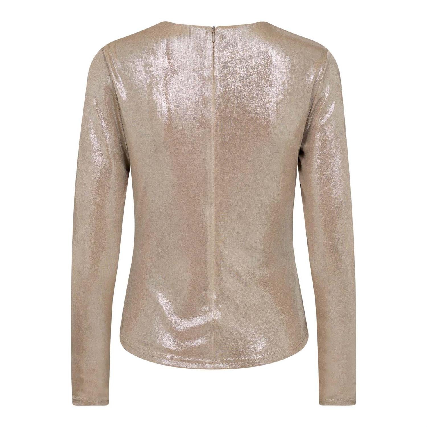 Elegant og moderne topp med draperinger i høyre side som gir et elegant og flatterende preg på denne skimrende blusen.