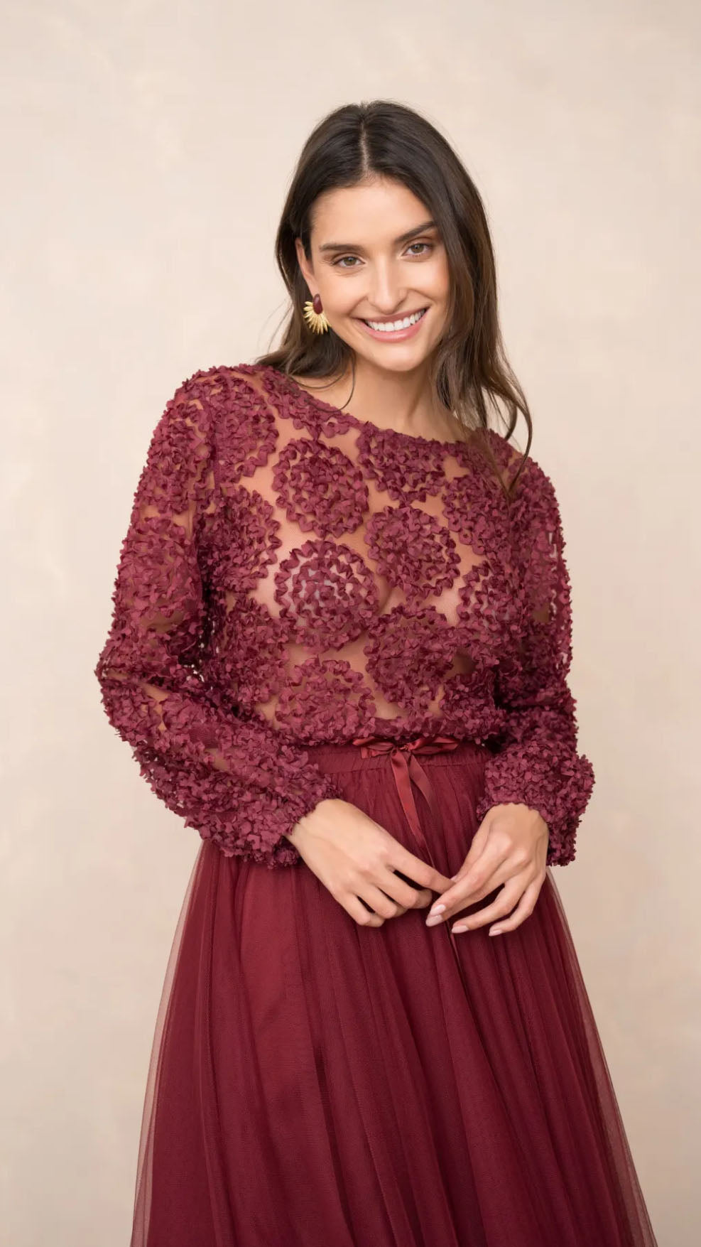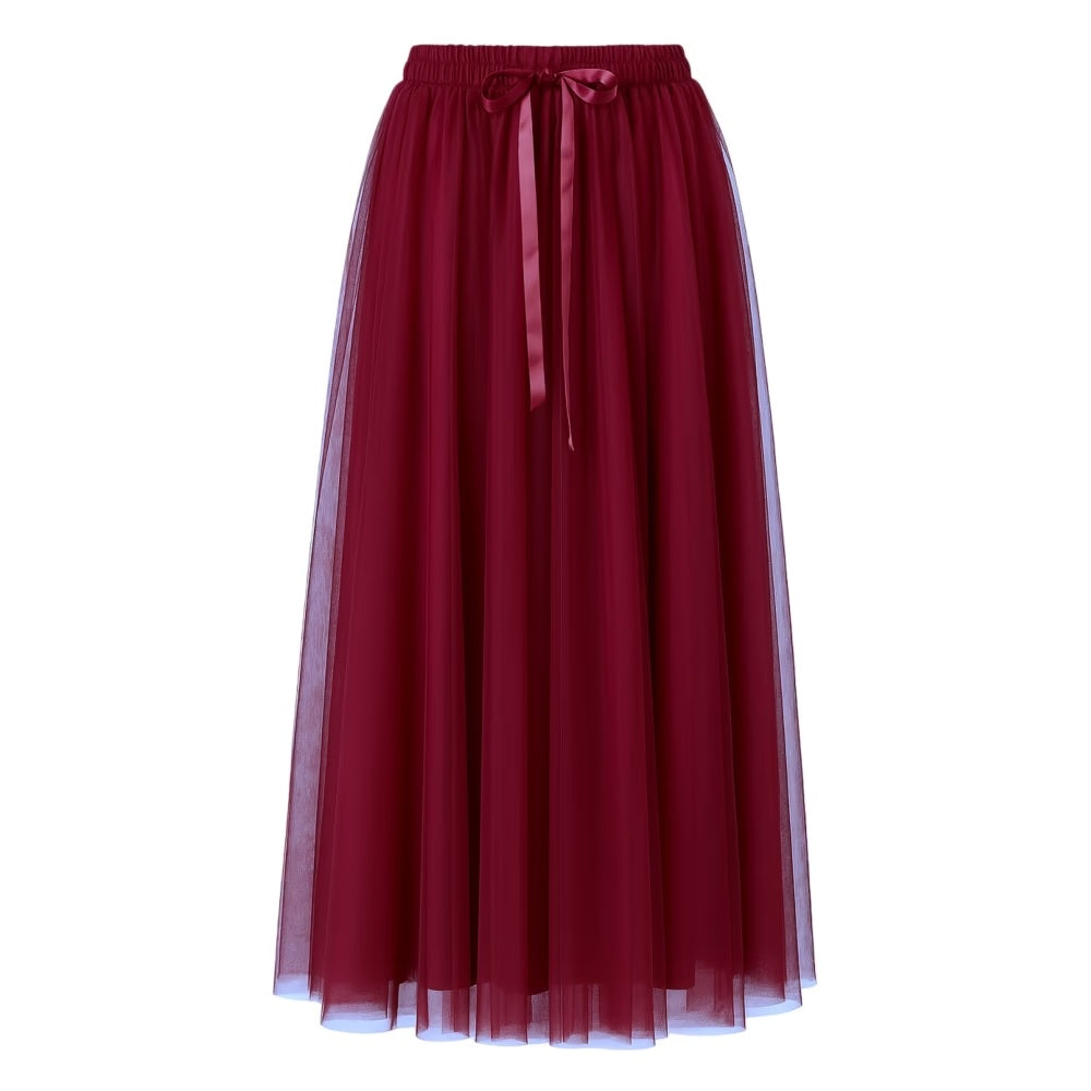 Ps. Dette skjørtet er i vinrødt. Bilde av modell for å vise passformen.