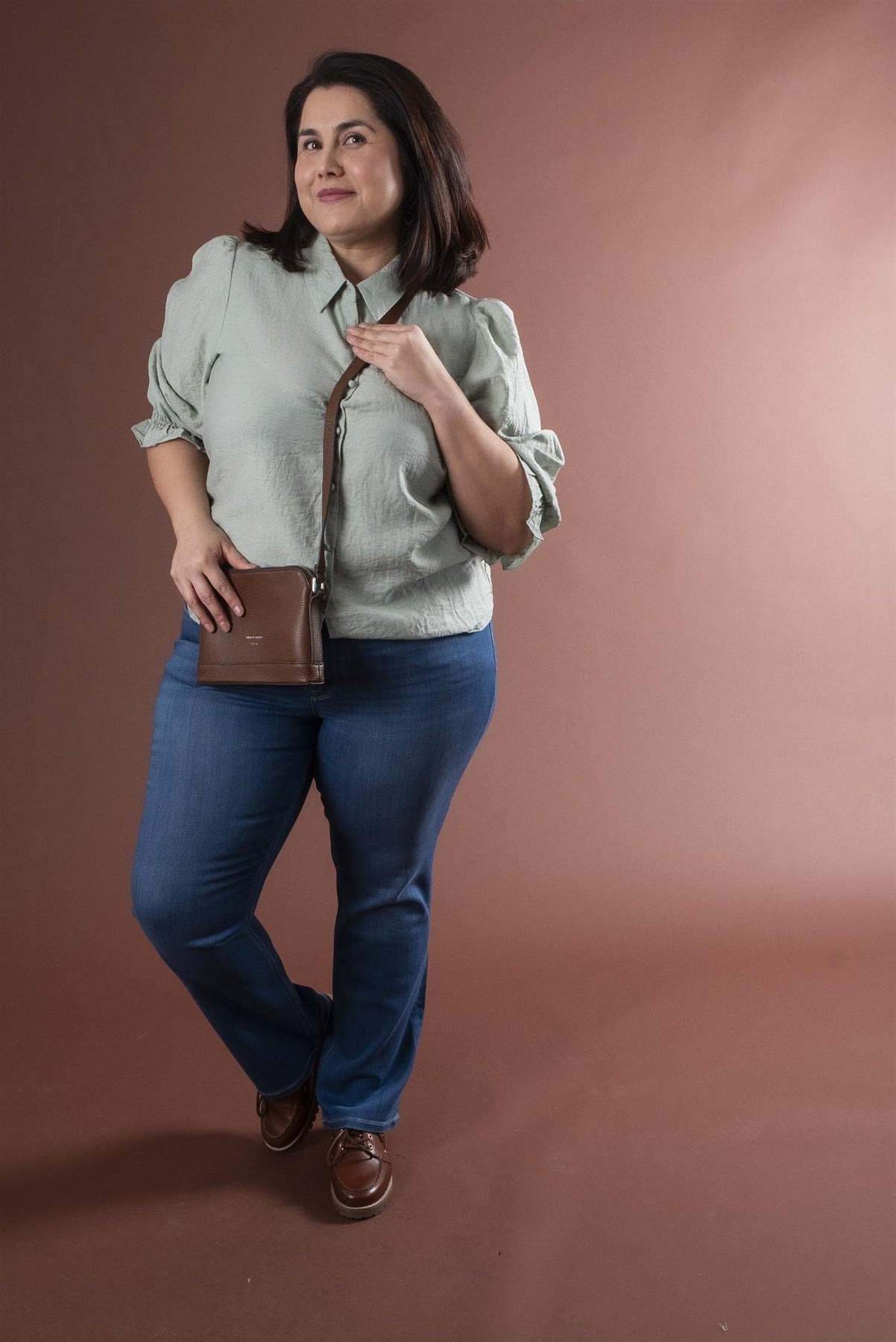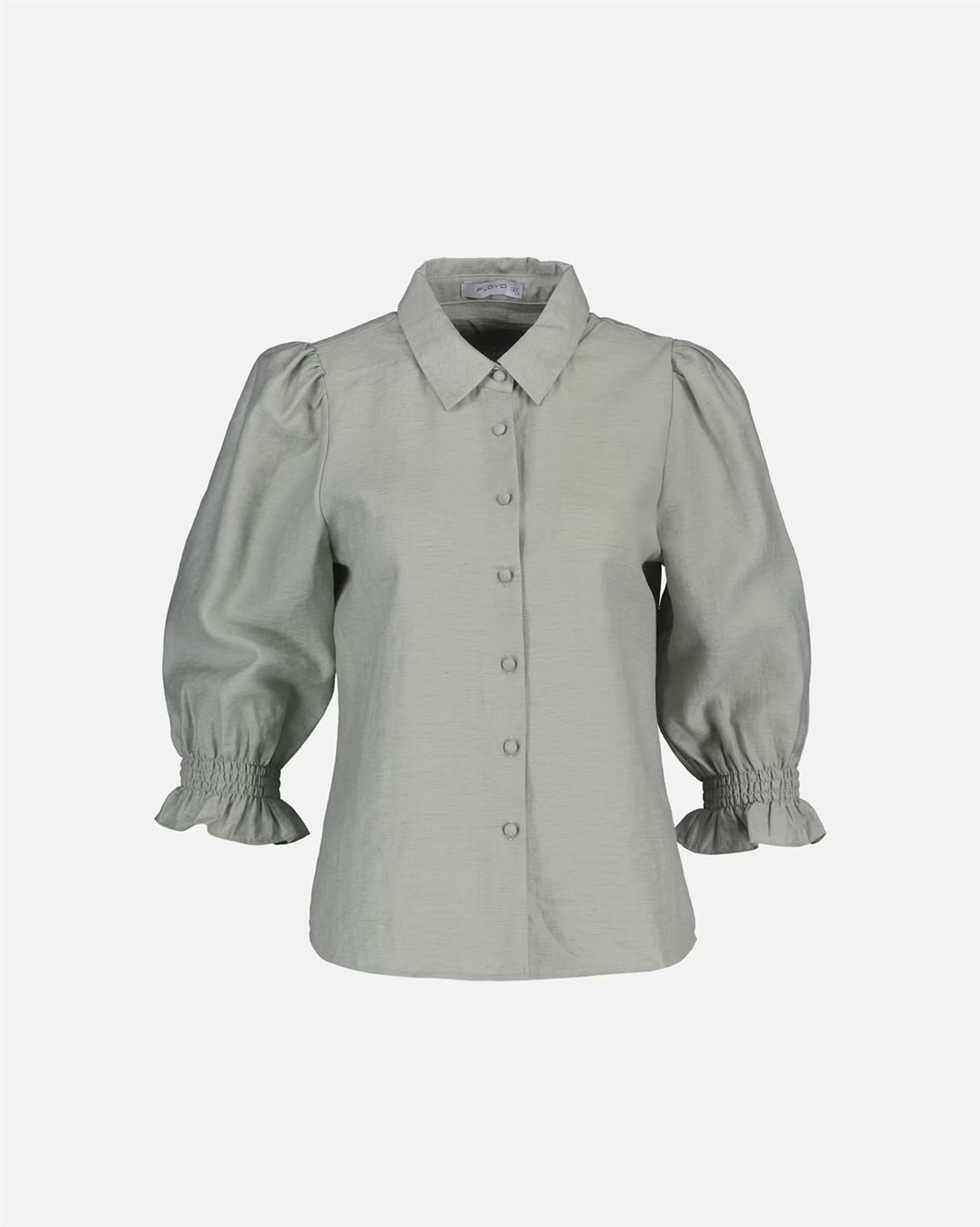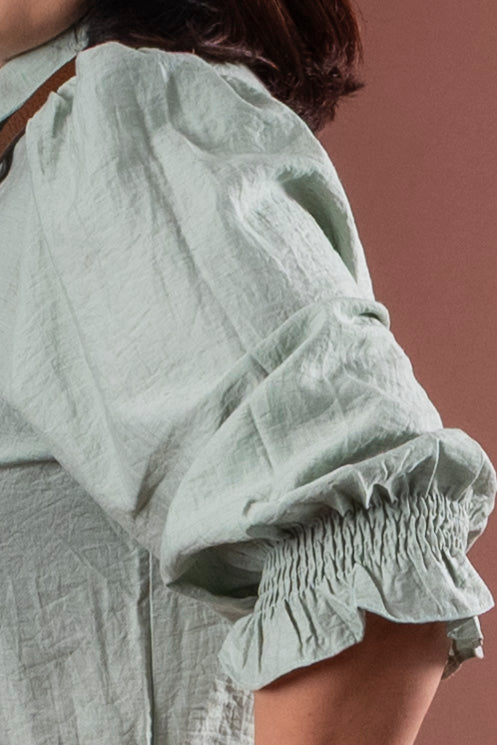 Ny blusemodell med en myk, lett strukturert overflate som føles sval og behagelig mot huden, og den melerte fargen gir et eksklusivt og levende uttrykk. Toppen har en rett passform som faller ledig fra skuldrene, med diskret puff og fine legg som gir form øverst. Ermene er halvlange og avsluttes med behagelig strikk for en myk overgang, mens tekstiltrukne knapper i front gir en gjennomført og elegant finish hele veien ned.