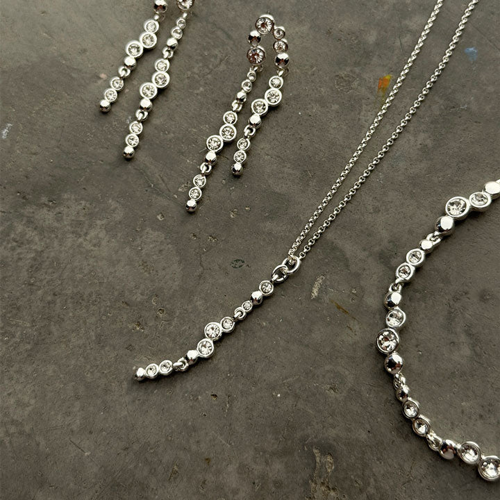 Sweet Droplets kombinerer glitrende krystaller og små metalldråper i en delikat balanse som gir et feminint og tidløst uttrykk.