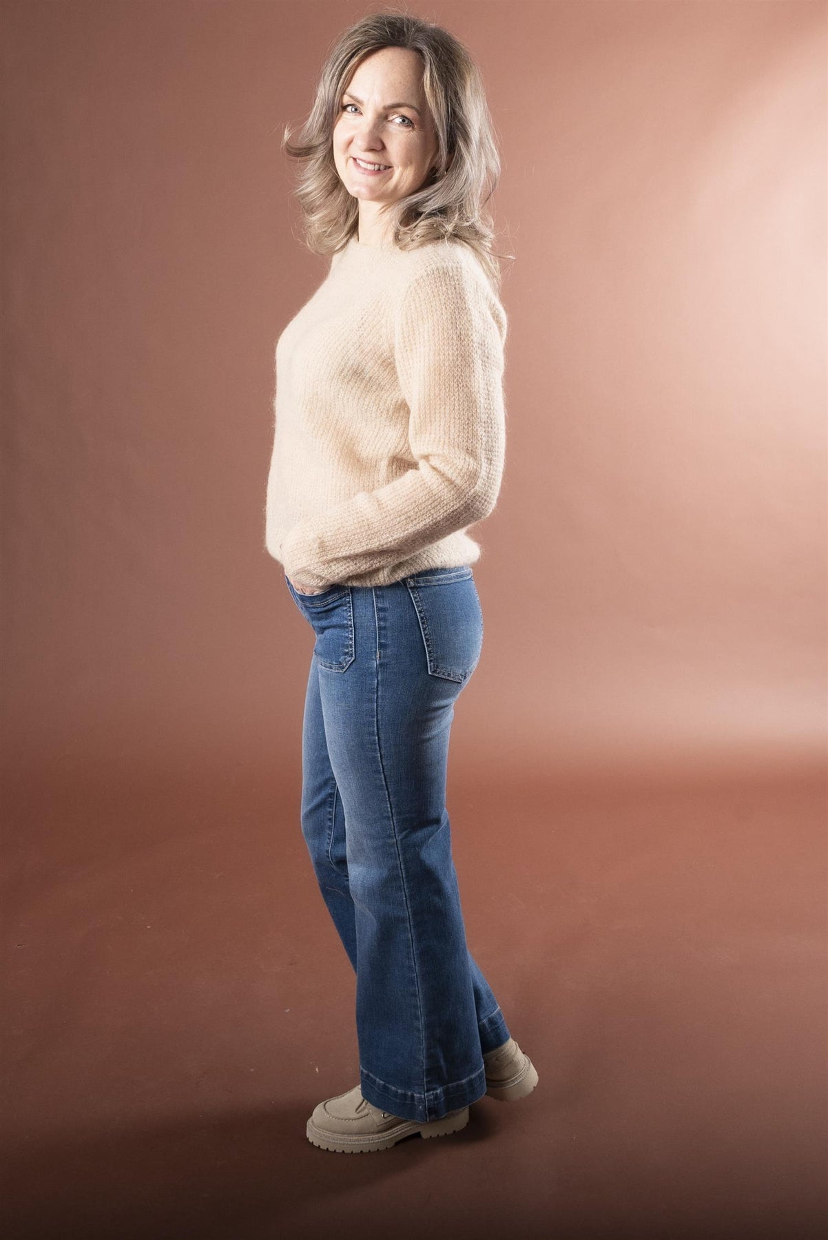 Vår modell er 164 cm og har str. XS. Jeansen er Anniken fra Floyd.
