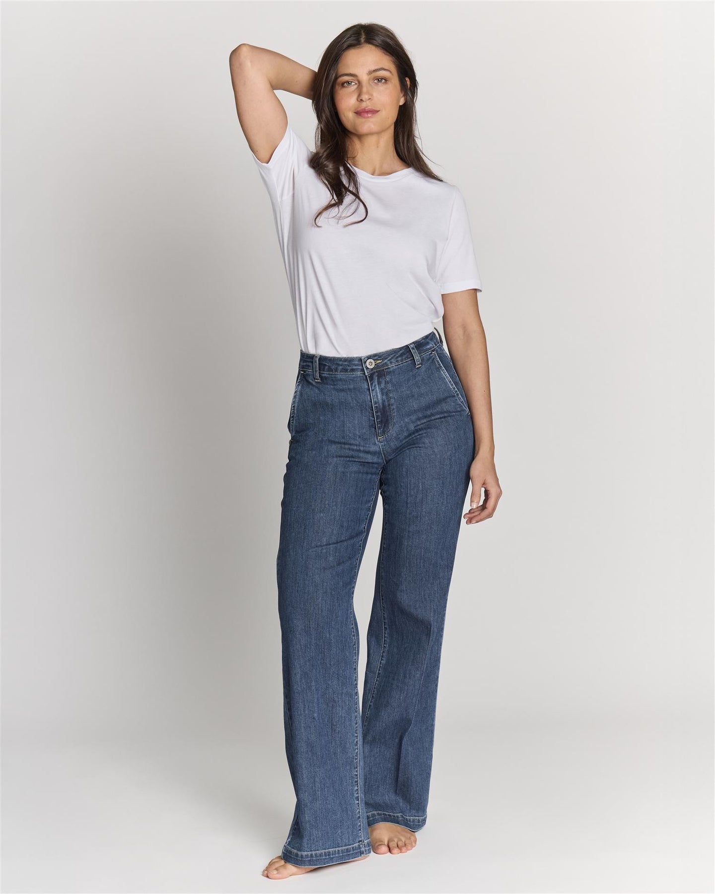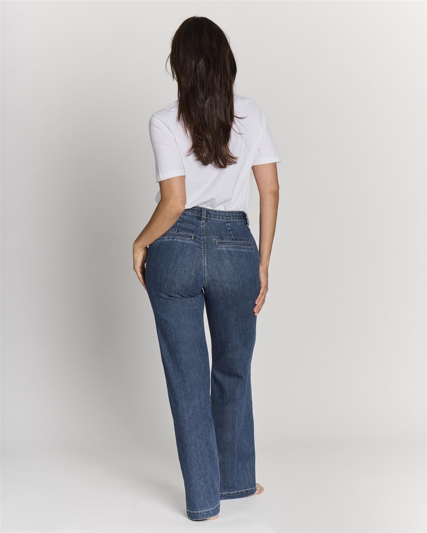 Bak er buksen utformet med dekorative sømmer og lommer. Dette gir et rent og stramt uttrykk bak, samtidig som passformen sitter pent over sete og hofter. Denimkvaliteten føles myk og behagelig og gir antrekket et rent uttrykk.