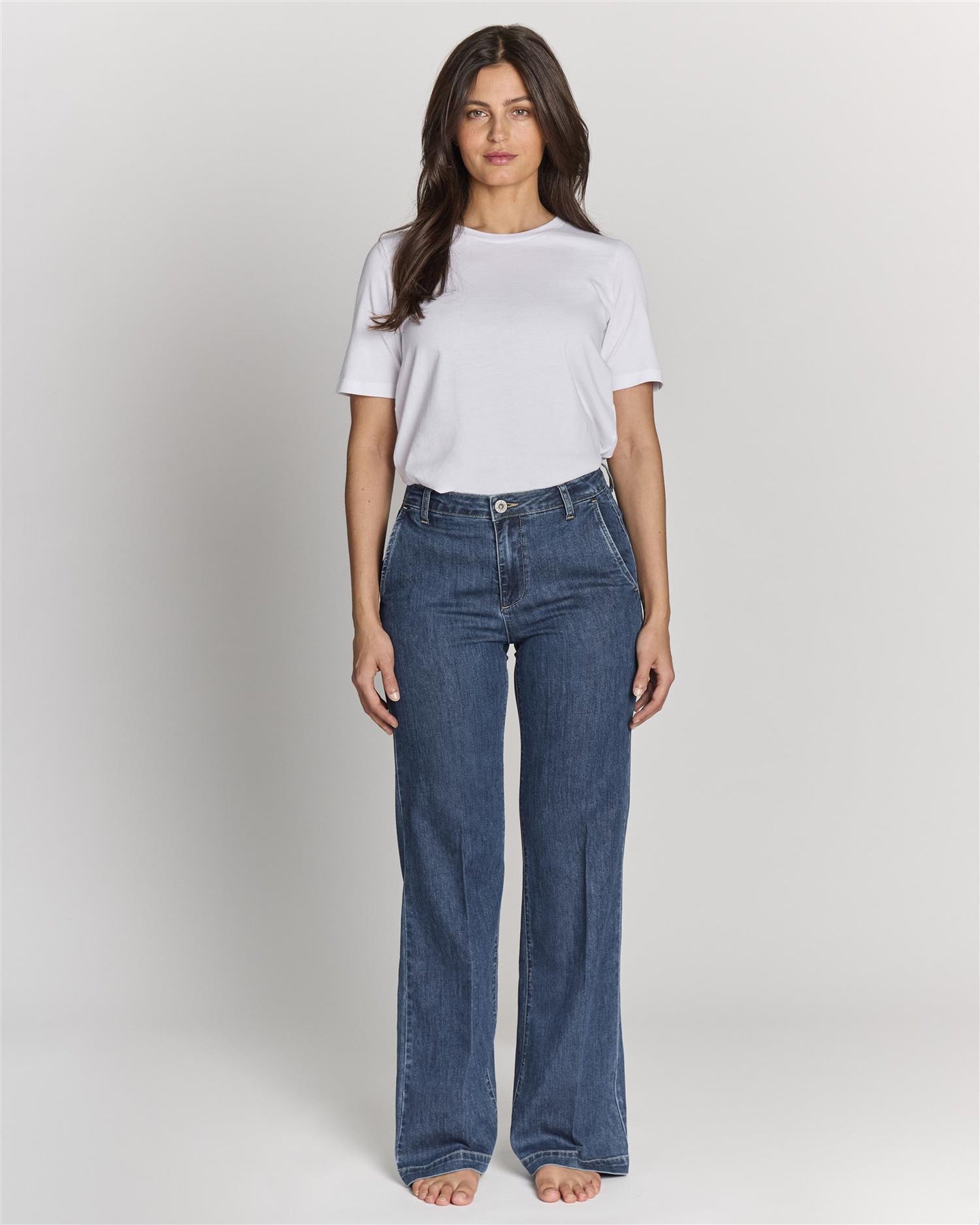 Tidsriktig og kul jeans med chinos-fasong, har en flatterende medium høy midje og rette ben med lett vidde som gir en balansert silhuett. Denne blir lett din nye favoritt-jeans!