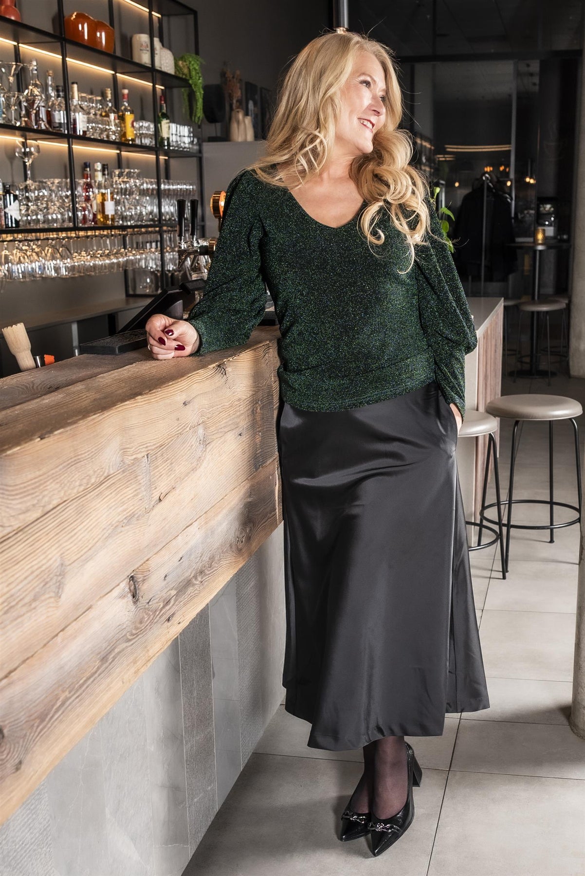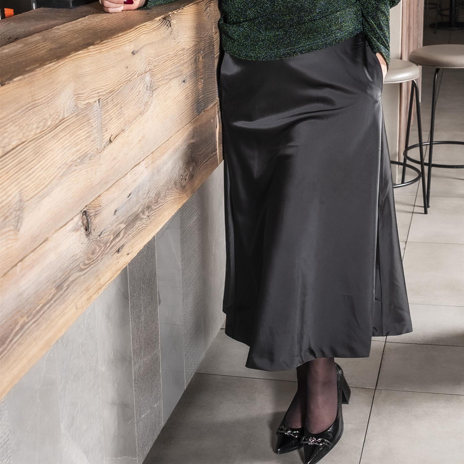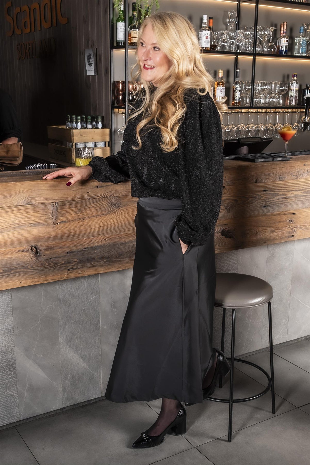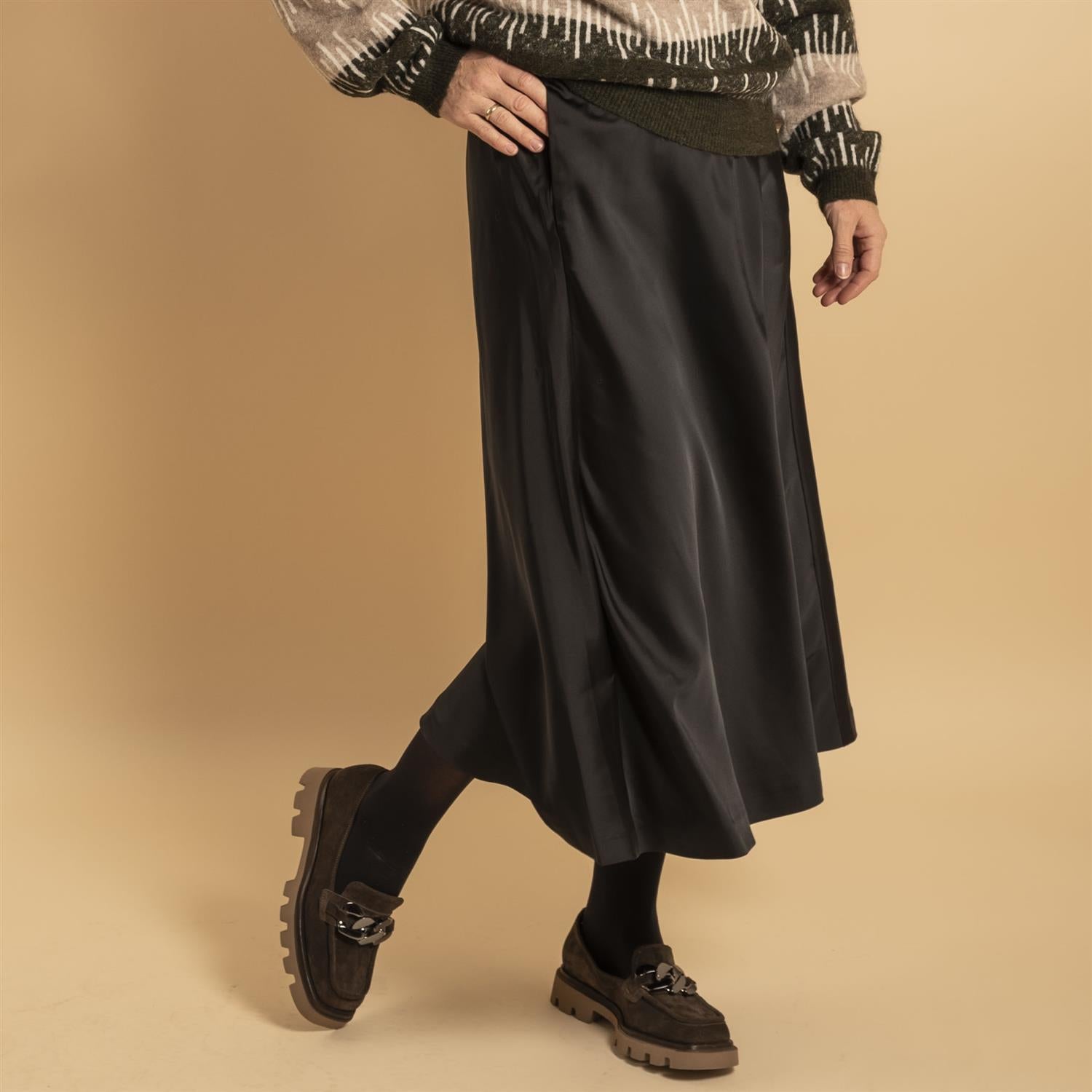 Zilky Skirt er et lekkert skjørt i silke-look fra InWear som faller utrolig flott. Nydelig til en pen bluse og kult med grov strikk som tilbehør. Ekstra deilig med praktiske lommer.